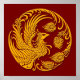 Poster Cercle traditionnel de Phoenix Jaune sur rouge