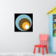 Un style rétro seventies cercles design en noir, bleu, marron, orange et blanc.