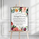 Élégant panneau d'affiche de mariage invitations invités à être débranché pour la cérémonie. Le design présente un design rustique été et automne fleuri aquarelle wreath design avec de beaux roses, dahlias, fleurs de pivoine, et verdure, dans une magnifique palette automnale de rouge bordeaux, jaune doré, orange pêche, rose roux et tons verts.
