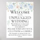 Des roses vintages bleues et blanches, des hydrangées et d'autres fleurs débranchent l'affiche de cérémonie mariage. Si vous désirez cette conception sur d'autres panneaux mariages, envoyez-moi un courriel à shutterbug600@yahoo.com .