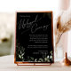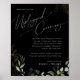 Entrez dans un monde enchanteur avec notre poster de cérémonie noir or blanc et fantaisie, parfait pour votre mariage botanique de printemps. Orné d'eucalyptus vert sauge et d'accents dorés, ce poster de cérémonie débranché exsude l'élégance et de fantaisie moderne. Imaginez vous promener dans un jardin d'été magique, entouré par les sons apaisants de la nature. Le design saisit sans effort le charme rustique de l'automne avec ses teintes vert clair, évoquant la beauté de la saison changeante. Avec une touche de sophistication minimaliste et une touche bohème classique, les détails chatoyants de la feuille d'or ajoutent une touche de glamour et de romance. Complété par une atmosphère de conte de fées gracieuse, ce poster de cérémonie débranché exsude la classe et met en valeur la splendeur naturelle de l'automne. N'hésitez pas à nous contacter pour toute question sur le design, et laissez-nous vous aider à faire le mariage de vos rêves.