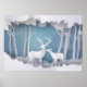 Décor de papeterie en bleu et blanc avec arbres et cerfs.