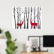 Cerfs rouges dans la forêt de bouleaux avec oiseaux