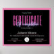 Poster Certificat D'Achèvement Prix Rose Et Noir