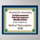 Certificat de réussite pour les transcriptionnistes Médicales. Parfait pour les MTs exceptionnels ou les MTs étudiants diplômés.