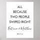 Funny All Because Two People Swiped Right coutume, personnalisé élégant, simple, minimaliste, script de calligraphie moderne en noir et blanc signe mariage modèle.