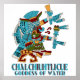 Chalchiuhtlicue était le matron des lacs et des cours d'eau. Personalisation de la beauté et de l'ardeur de la jeunesse, Chalchiuhtlicue était représenté comme une rivière d'où poussait un poirier épineux chargé de fruits, symbolisant le coeur humain. Elle régnait sur toutes les eaux de la terre, les océans, les rivières, la pluie, etc., mais était aussi associée au mariage. Son mari est Tlaloc, le dieu de la pluie.