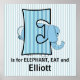 Poster Chambre de bébé E Éléphant Bleu Monogrammé