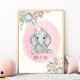 Poster Chambre de bébé fille fleurs rose aquarelle élépha