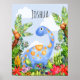 Ce charmant design d'affiche présente un dinosaure aquarelle bleu peint à la main et une jungle colorée. L'affiche peut être personnalisée avec le nom de votre garçon. Parfait pour la chambre d'un nouveau-né, ou pour la chambre d'un enfant qui aime les dinosaures.