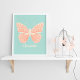 Jolie nursery et impression pour chambre d'enfant avec une illustration vectorielle douce d'un papillon qui peut être personnalisée avec le nom de votre enfant.