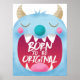 Décoration de chambre de nursery mignonne pour votre enfant ! C'est une illustration adorable d'un monstre bleu avec la bouche grande ouverte. Le texte à l'intérieur de la bouche dit "né pour être original". Conception de citation inspirante cool pour la chambre des garçons.