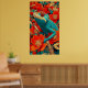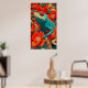 Chameleon in Technicolor: A spectacularly vibrant and richly detailed poster bursting with color. The artwork features a bold, red chameleon with yellow and cyan markings, perched on a branch. Rendered in a dynamic, high-saturation style reminiscent of Pop Art or graphic novel illustration, the reptile stands out against a fantastical forest backdrop. The scene is alive with exaggerated colors—fiery reds, golden yellows, brilliant turquoise, and sky blues—creating an energetic, kaleidoscopic vision of nature. This is a perfect piece to bring a tropical, enthusiastic, and playful statement to any space.