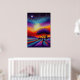 Affiche de peinture à l'huile esthétique d'un champ romantique de lavande en Provence en France la nuit. Peinture murale colorée pour votre salon. L'oeuvre peut être achetée en tant que produit imprimé physique ou en tant que fichier numérique haute résolution de téléchargement pour vous imprimer sans attendre l'expédition. Le format Aspect Ratio est de 2:3 avec une résolution de 300 dpi (7200x10800 pixels ; 24"x36") et peut être facilement adapté pour des tailles d'impression plus petites aussi. L'image a été créée avec le soutien de l'IA.