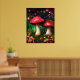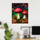 Champignons verts rouges et dorés dans une forêt d'imaginaires enchantée. Parfait pour encadrer et monter dans n'importe quelle pièce ou bureau ou donner en cadeau à quelqu'un.
