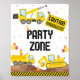Ce design adorable présente des camions de construction et des confettis colorés.