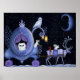 Poster Charrette bleue de chat Hiver Hibou enneigé Cerf b