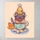 Autumnal cat présente un mignon chat gris avec une tasse de thé, des feuilles et un huileux. Qui n’aime pas un casquette mignon !