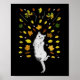Chat blanc aux feuilles d'automne et illustration arrière - plan noire.