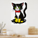 Un chat noir et blanc mignon et adorable aux pieds jaunes avec ruban rouge. C'est un art généré par l'IA.