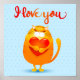 Chat mignon avec coeur et message Je t'aime. Art numérique