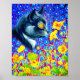 Poster représentant la peinture animale de Louis Wain Chat en mer de fleurs (1860-1939). Un chat noir et blanc aux yeux dorés sent les fleurs jaunes. Dans l'arrière - plan violet sont des fleurs bleues. Un cadeau merveilleux pour l'art amoureux des chats et anglais.