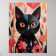 Poster Chat Noir Adorable Avec Fleurs Roses