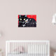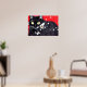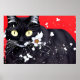 Poster Chat noir avec Fleurs blanches Arrière - plan roug
