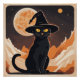 Chat noir avec chapeau devant une pleine lune. Vecteur Artwork
