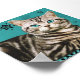 Féline à félins rayés aux yeux turquoise posant pour son closeup.