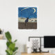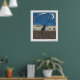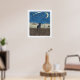 Poster Chat sur une clôture regardant le ciel nocturne au