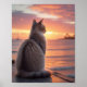 Poster Chat sur une jetée avec un coucher de soleil et un