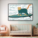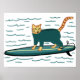 Poster Chaton Tabby Fun Surfant Nurserie Enfants Plage