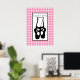Une affiche avec l'illustration noire d'une danseuse de ballet pantoufles et ses pattes inférieures qui sont transparentes permettant à la couleur de l'arrière - plan de se montrer. Ballerina se tient sur ses orteils, en pointe. Texte : Ballet Girl. Le texte peut être personnalisé à un nom ou un autre texte de votre choix si vous le souhaitez. Arrière - plan est un motif en pois blanc sur rose.
