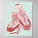 Illustration en rouge et rose d'une jetée vintage rétro de chaussures d'escalade rocheuse. Chaussures de style démarrage. L'objectif est de promouvoir la résolution et la réimpression des chaussures d'escalades plutôt que de les remplacer. Pour les grimpeurs qui aiment tirer le meilleur parti de leur équipement d'escalades plutôt que d'acheter constamment de nouvelles choses pour le sport de métier ou l'escalade de gym.