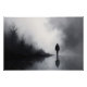 Une figure solitaire traverse la brume, reflétée à la surface d’une eau silencieuse. L'obscurité des arbres et l'épaisse fumée évoquent mystère et introspection, comme si chaque pas menait dans les profondeurs inconnues de l'âme.