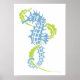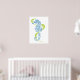 Cheval de mer bleu, vert citron et algues sur blanc arrière - plan affiche pour enfants.