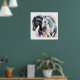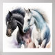 Poster avec une paire de chevaux noirs et blancs qui traînent ensemble. Illustré avec des aquarelles.