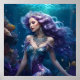 Une belle sirène aux cheveux violets en cascade dans l'océan.
