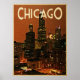 Cette ligne d'horizon dramatique de Chicago la nuit n'est rien pour les amateurs vintages qui aiment les villes. Design de voyage vintage Chicago, Illinois.