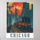 Faites un voyage sur la voie de la mémoire avec cette affiche de voyage vintage captivante de Chicago. Cette affiche pleine de charme présente l'emblématique horizon de Chicago, capturant l'essence de cette merveille architecturale. Ce poster est parfait pour envoyer des salutations à des proches ou ajouter une touche de goût voyage vintage à votre décor maison.