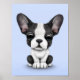 Ce joli design présente un petit chiot français bulldog aux grands yeux noirs. Le chien est assis avec ses pattes les unes à côté des autres et se tourne vers l'avant avec sa tête légèrement inclinée d'un côté. La tête surdimensionnée et le petit corps ainsi que les détails de la fourrure créent une belle combinaison d'un dessin animé et d'un look réaliste. Ce design de bulldog français unique et adorable est parfait pour tous les amateurs de chiens et d'animaux de compagnie.