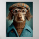 Un charmant chien anthropomorphe habillé d'un manteau turquoise, d'un col en tricot marron et d'un béret à motifs, avec lunettes rondes. Ce magnifique portrait mêle fantaisie et élégance, parfait pour les amoureux des animaux comme pour les amateurs d'art. Idéal pour les cadeaux uniques, la décoration à la maison ou les accessoires de mode de déclaration.