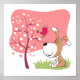 Poster Chien de dessin animé Fleur de printemps rose de f