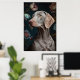 Poster Chien Weimaraner avec fleurs | Élégant portrait d'