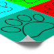 Belle caricature empreinte de patte de chien en carré coloré. Design décoratif original pour la maison, les bureaux et les entreprises liées aux chiens.