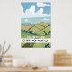 Cotswolds Pour une pause. Belle affiche de voyage de style vintage imprimé d'un avion rouge bi de style rétro survolant le paysage.