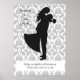 Belle affiche GRANDE pour votre cérémonie de mariage avec un arrière - plan damassé blanc et gris accentué d'une grande silhouette d'un marié levant sa mariée des pieds dans la joie. Personnalisé avec vos noms et date mariage. Alors qu'en bas se trouve le mot "Aujourd'hui, deux familles vont devenir une. Veuillez choisir un siège, pas un côté.