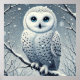 Belle chouette blanche aux yeux bleus saisissants perchée sur une branche d'arbre gelé pendant les chutes de neige. Évoquant la sérénité et les merveilles hivernales, cette image étonnante capture l'essence de la beauté de la nature en période froide.