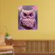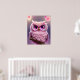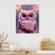 Poster Chouette rose bouffante aux coeurs